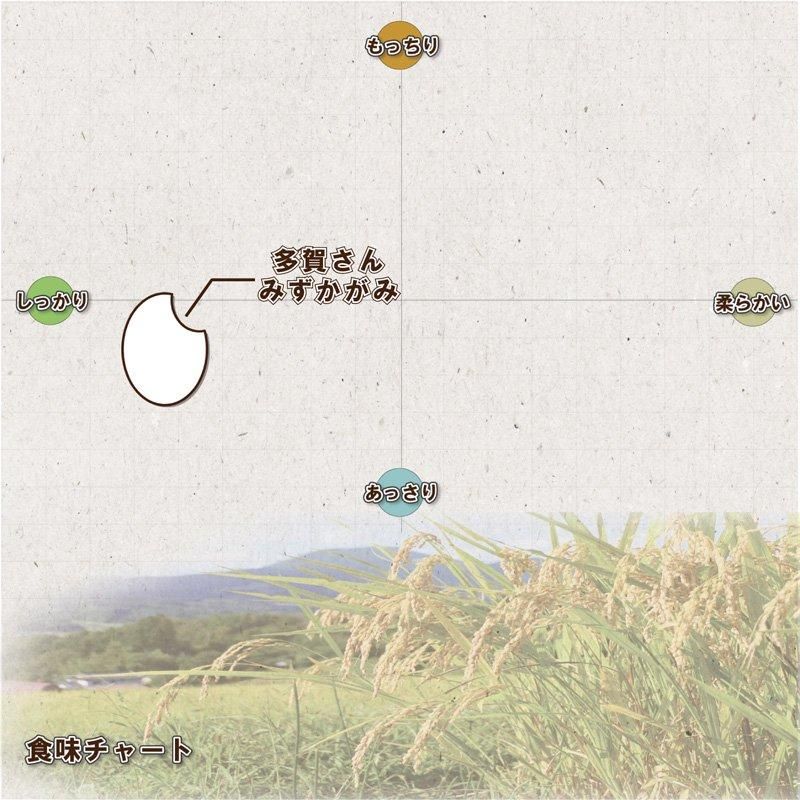 滋賀県発の新品種ブランド米滋賀県長浜産 多賀農産さんの特別栽培みずかがみ 1kg は滋賀県が総力を上げて開発した早生の新ブランド米です。生産者の多賀さんはすべてのお米を化学肥料・農薬が県基準の50%以上減の特別栽培で安心安全な生産をされています。みずかがみは名前のとおり、とてもみずみずしいお米で、冷めても美味しく、お弁当やおにぎりに最適なお米です。どちらかというと粘りが少なめであっさりした味わいなので和食との相性が特によいお米です。